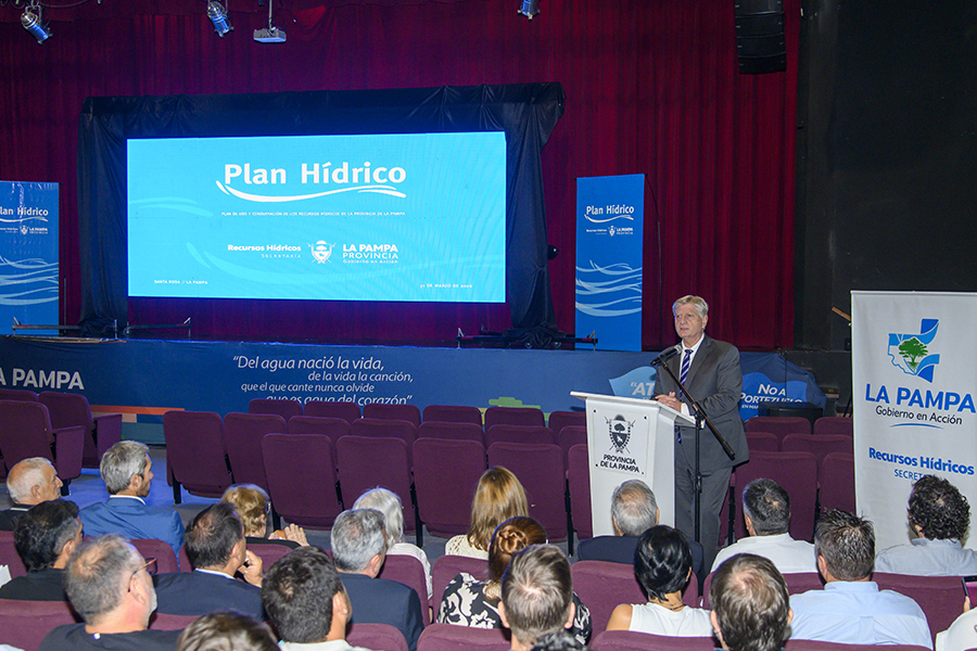 El gobernador pampeano lanzó una estrategia a diez años para garantizar la seguridad hídrica, cuestionó posibles cambios en la Ley y convocó a municipios a una gestión conjunta del recurso.