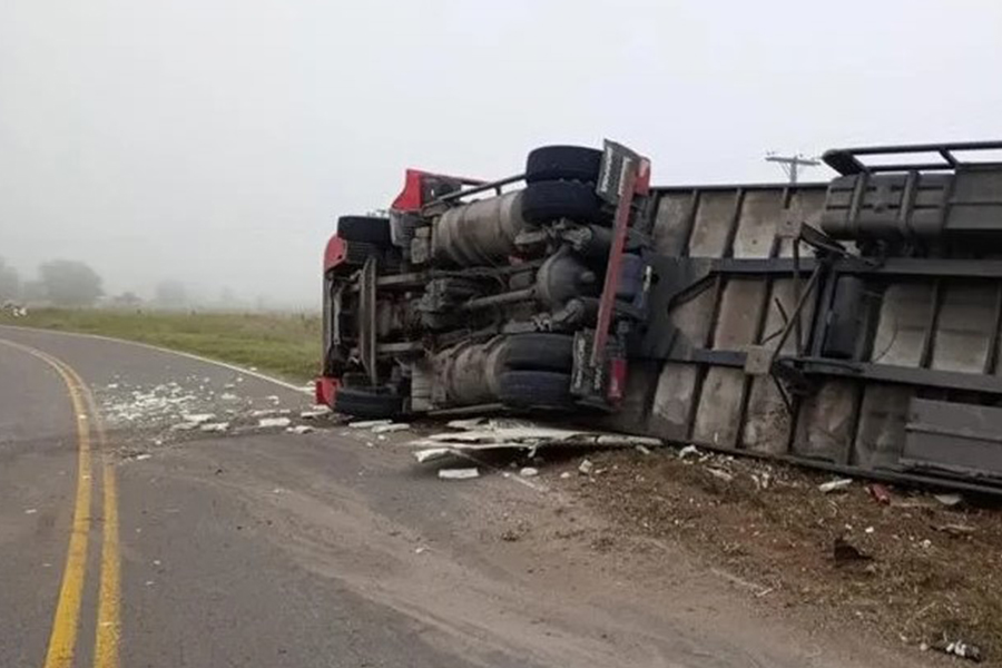 Un transporte que viajaba desde Río Negro hacia Córdoba terminó en la banquina con su carga desparramada. El test de alcoholemia arrojó 1,56 g/l de alcohol en sangre.