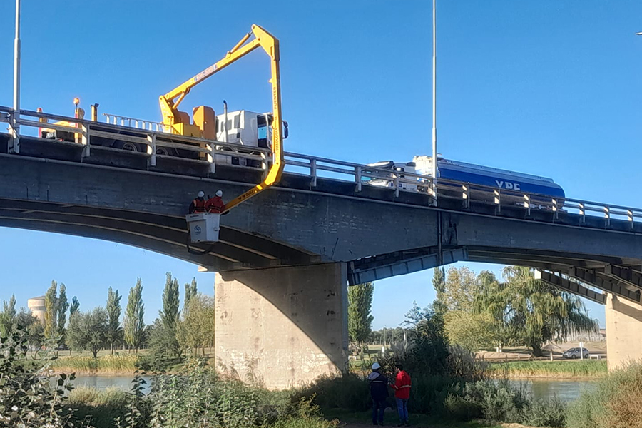 Vialidad Nacional realiza un relevamiento técnico en la conexión entre La Adela y Río Colorado. El tránsito permanecerá reducido a media calzada durante la jornada.