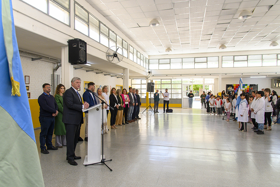 De la actividad participaron también la vicegobernadora Alicia Mayoral; la intendenta Fernanda Alonso; la ministra de Educación, Marcela Feuerschvenger; el ministro de Obras y Servicios Públicos, Alfredo Intronati; el ministro de Desarrollo Social y Derechos Humanos, Diego Álvarez; la directora del establecimiento, Silvia Sorba, y miembros de la comunidad educativa.