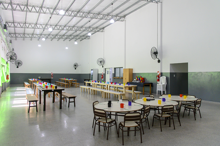 El nuevo salón comedor, junto con la cocina y servicios anexos, fue diseñado con un concepto de doble uso, lo que permitirá su utilización tanto durante la jornada escolar como en horarios extendidos, para actividades sociales, culturales y comunitarias.